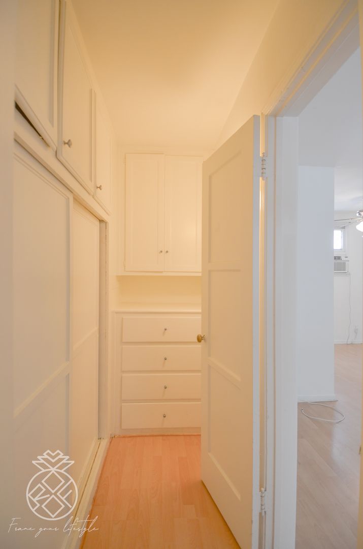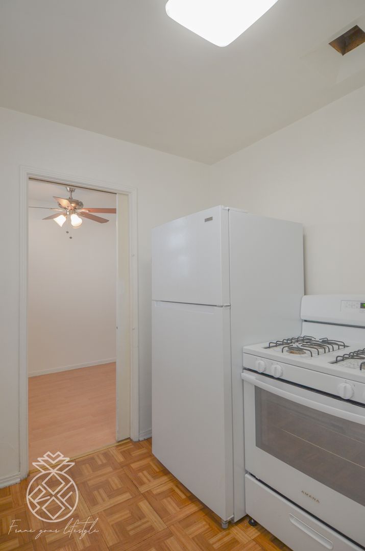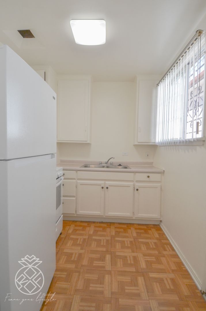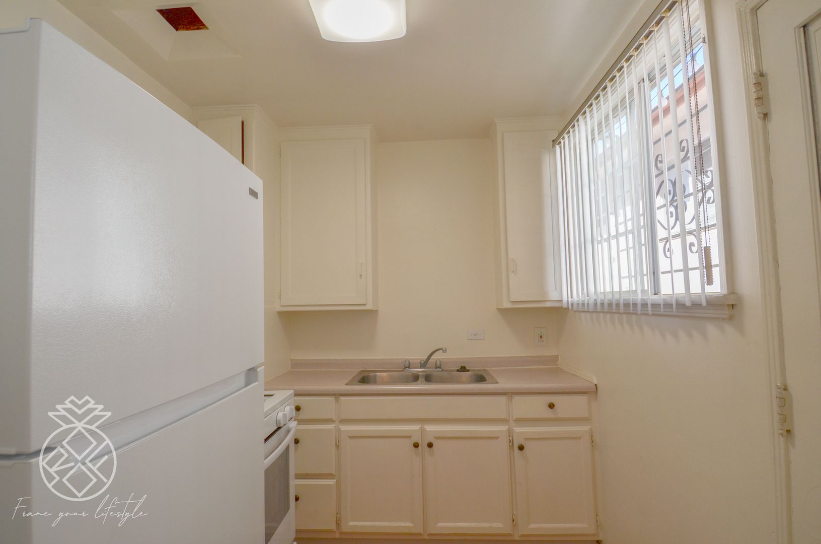 First floor Studio + 1 bath + FULL Kitchen with all appliances including a window A/C. It is a great layout and has a natural light that comes through the expanded windows into the studio.