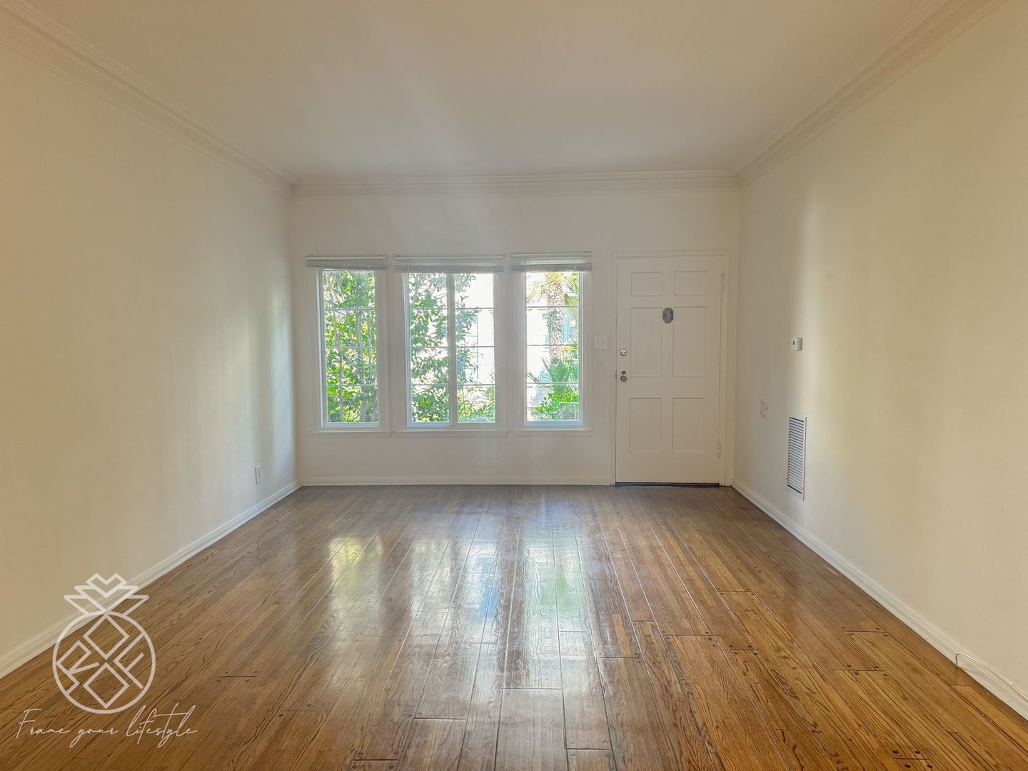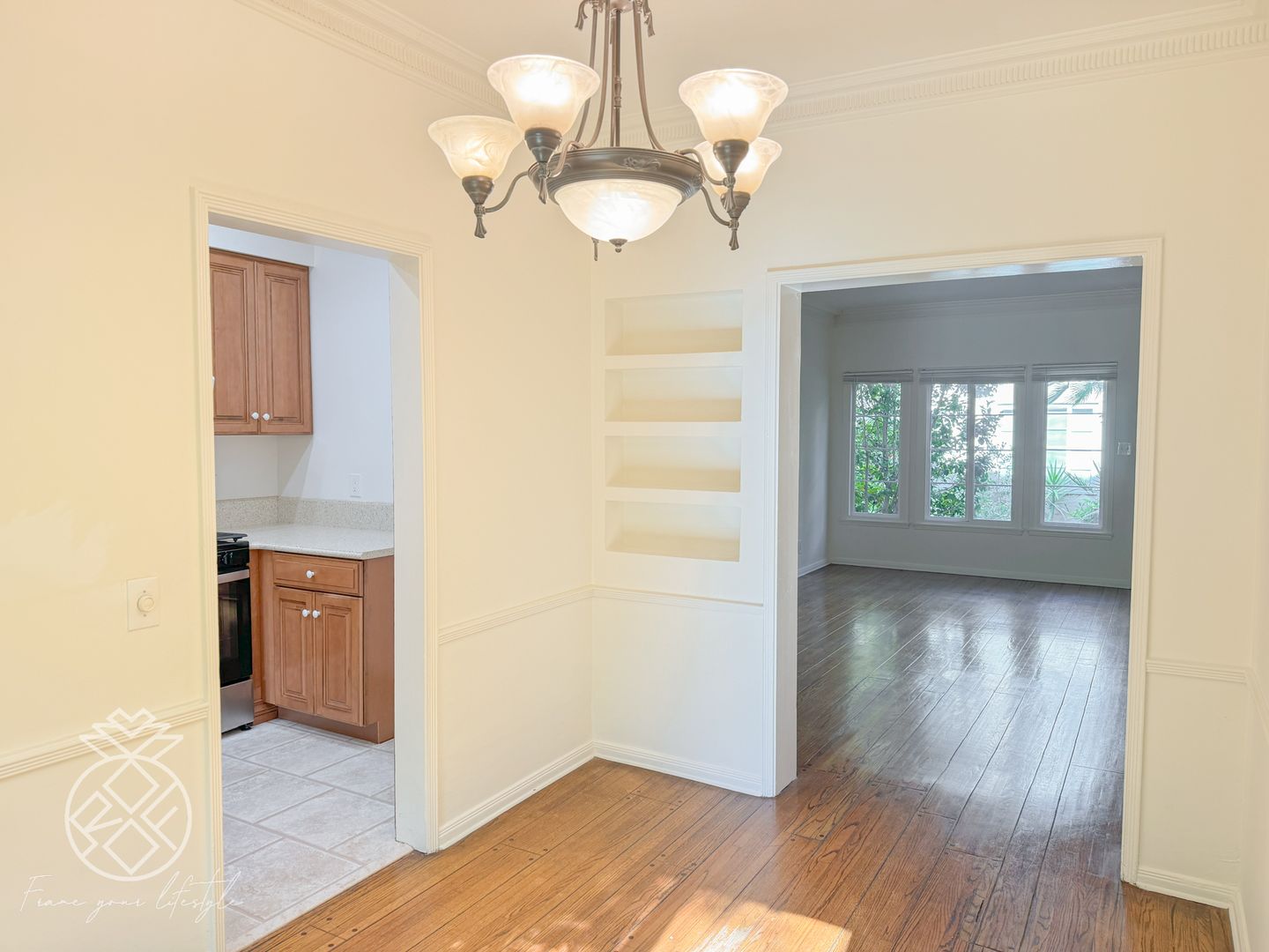 - A comfortable living room that can fit a sectional couch/chaise lounge entertainment system.